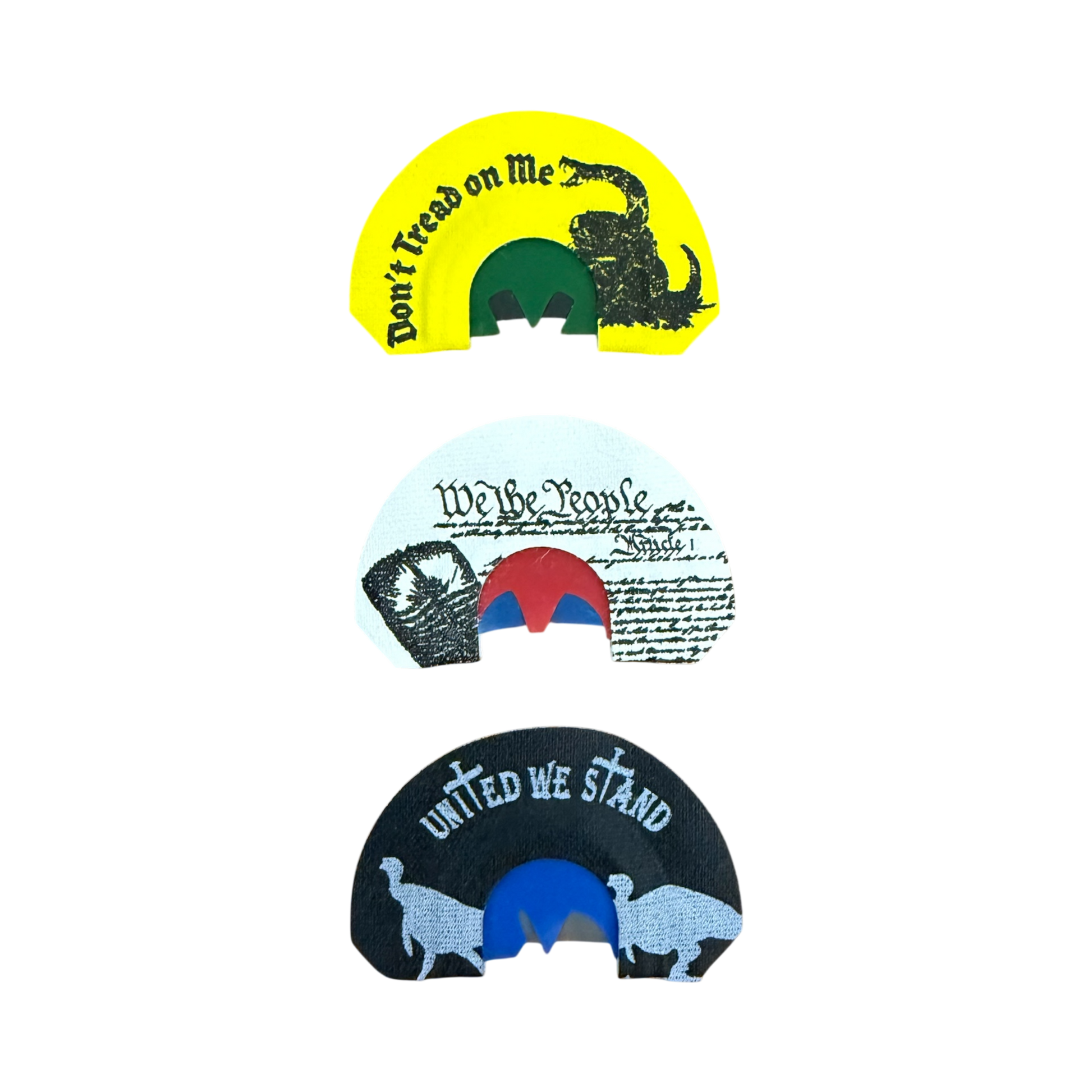 The United We Stand mouth call is built for hunters who believe in unity, tradition, and the shared heritage of America’s turkey woods. Featuring a reverse combo cut, this call delivers a distinctive sound profile with a nasally front end and a raspy back end that drives gobblers wild. It shines when it’s time to get loud, making it an excellent choice for aggressive cutting and yelping to fire up distant birds. Built with a reliable 3-reed design, the United We Stand offers the power, versatility, and consistent performance serious turkey hunters count on every spring.
